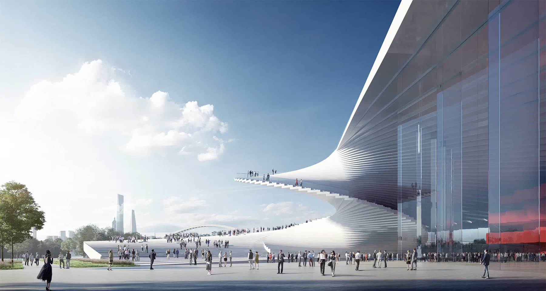 Студия Snøhetta представила концепцию оперы в Шанхае в 2019 году. Главная задача команды в рамках этого проекта — привлечь аудиторию разного возраста за счет адаптации здания к проведению как традиционных представлений и концертов классической музыки, так и современных постановок. Комплекс возводится в квартале Expo Houtan, и, по задумке архитекторов, его раскидистая форма ассоциируется с движением. Например, спиралевидная поверхность крыши напоминает раскрывающийся веер, воплощающий динамику танца и человеческого тела. Постепенно спускающаяся к земле, она также служит пространством для проведения мероприятий и местом встреч, создавая ощущение сопричастности. Здание вместит несколько зрительных залов, рестораны, галереи, библиотеки и небольшие кинотеатры.
