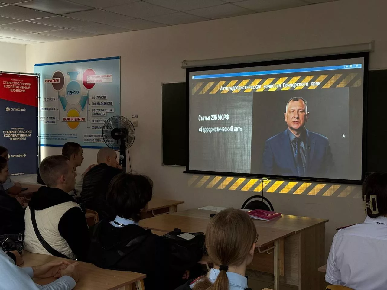 Также студентам был показан информационный видеоролик, содержащий необходимые материалы по данной теме и важность соблюдения законодательства Российской Федерации, касающейся противодействию терроризма и экстремизма.