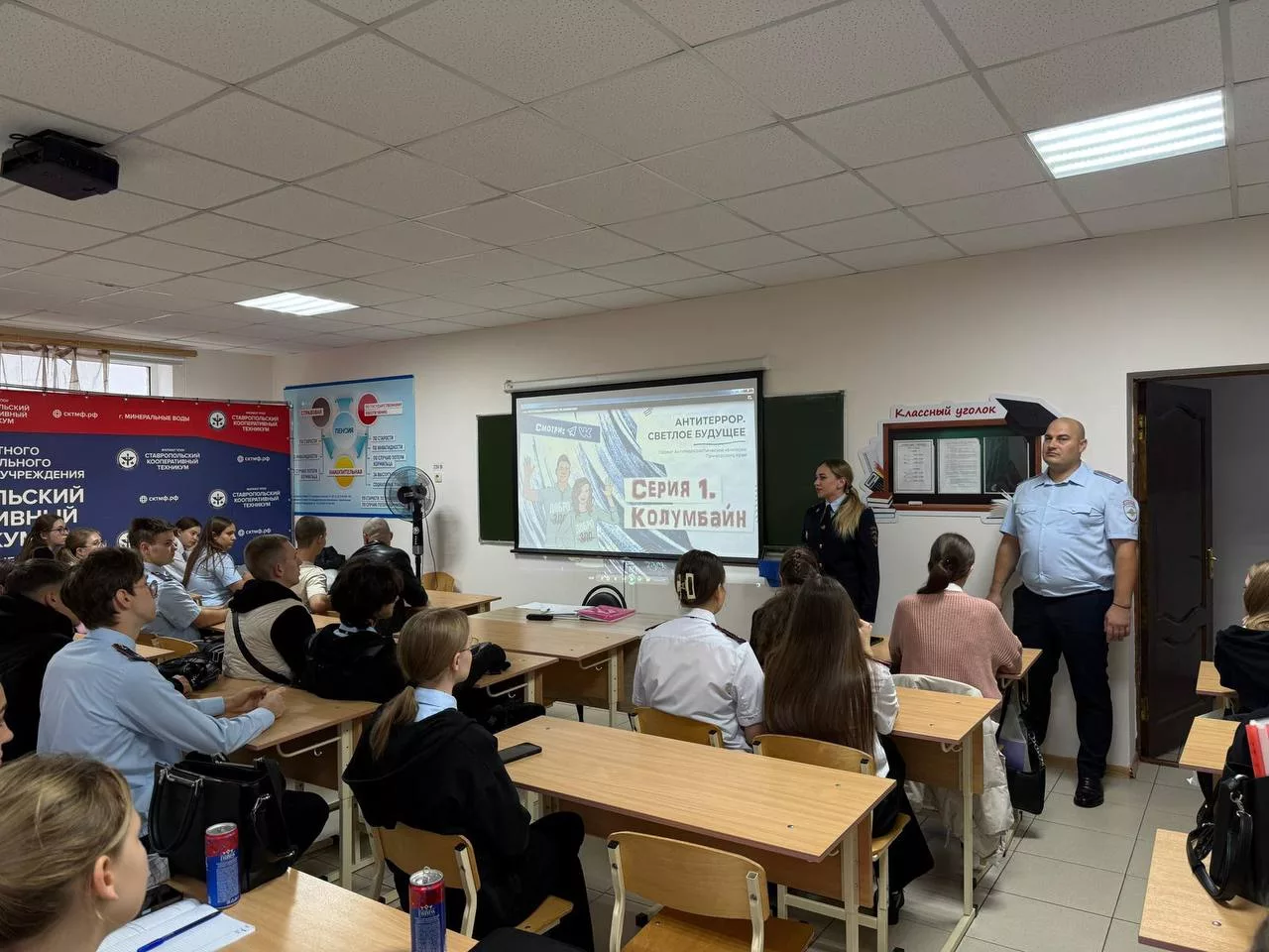 Сотрудниками Минераловодского линейного управления МВД России на транспорте организована встреча с 30 учащимися Филиала Ставропольского кооперативного техникума г. Минеральные Воды на тему: «Предотвращение деструктивных проявлений в форме скулшутинга в учебном заведении».