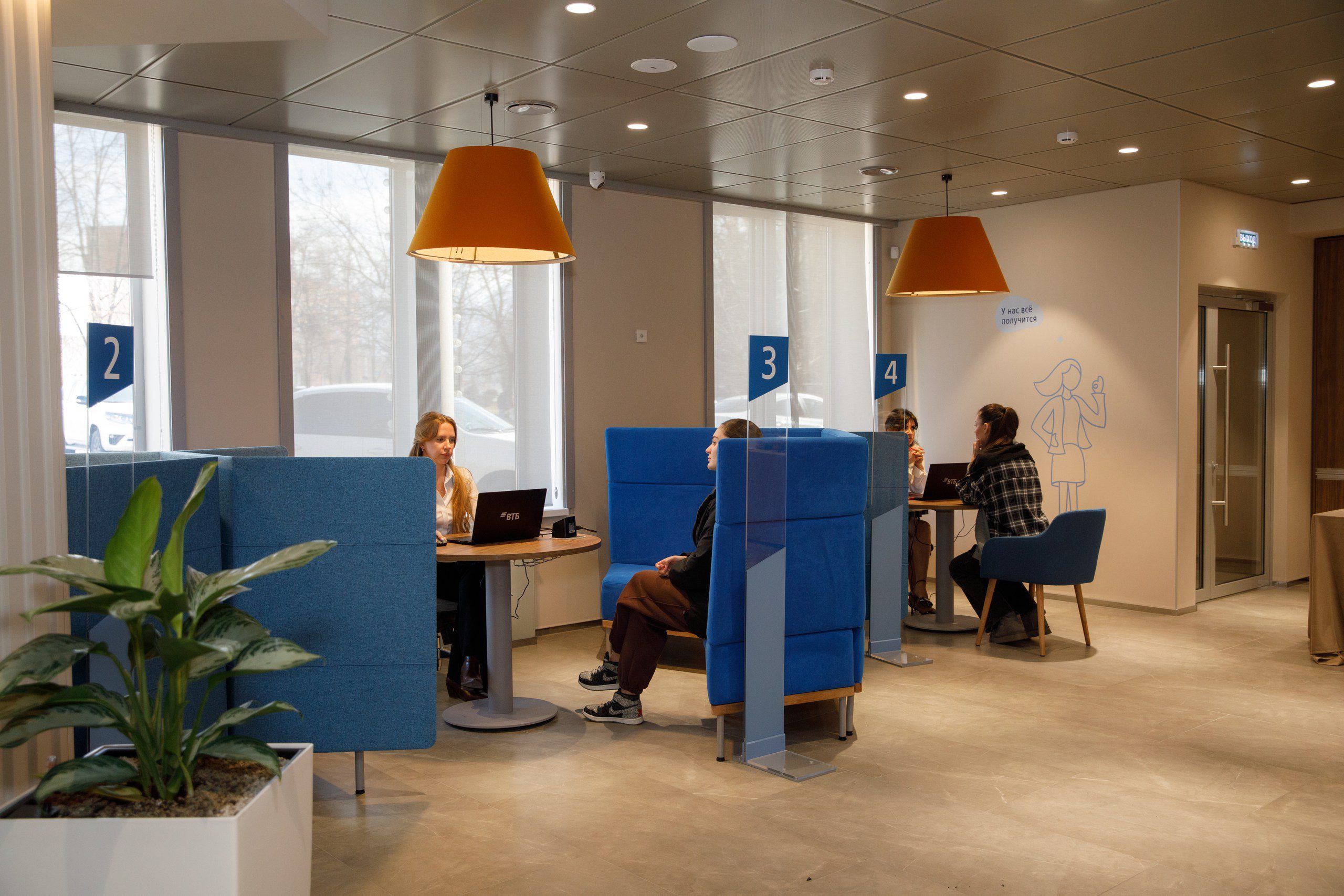 Современный технологичный офис соответствует новым стандартам обслуживания ВТБ: в отделении оборудованы удобные зоны обслуживания, для обсуждения конфиденциальных вопросов предусмотрена переговорная комната. Клиенты могут подключиться к бесплатной сети Wi‑Fi и воспользоваться кофе‑станцией. В круглосуточной зоне установлено четыре банкомата.